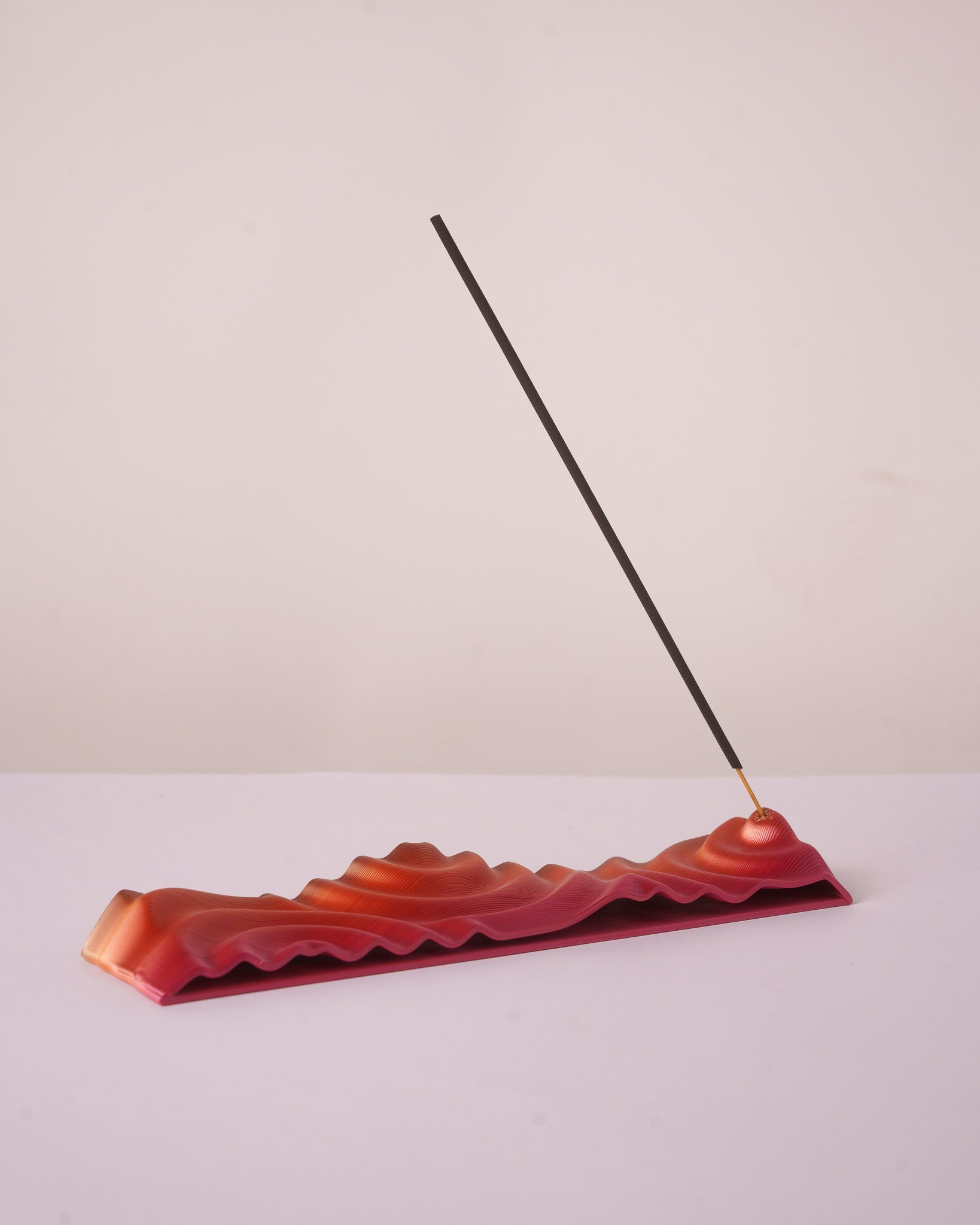 Inspirado en el fluir del agua, el porta inciensos Ondine captura la esencia de las ondinas, los espíritus acuáticos que danzan sobre la superficie creando ondas suaves y etéreas. Su diseño sigue esa misma idea: formas orgánicas y fluidas que envuelven el humo del incienso, dejando que ascienda con naturalidad, como una brisa sobre el agua.